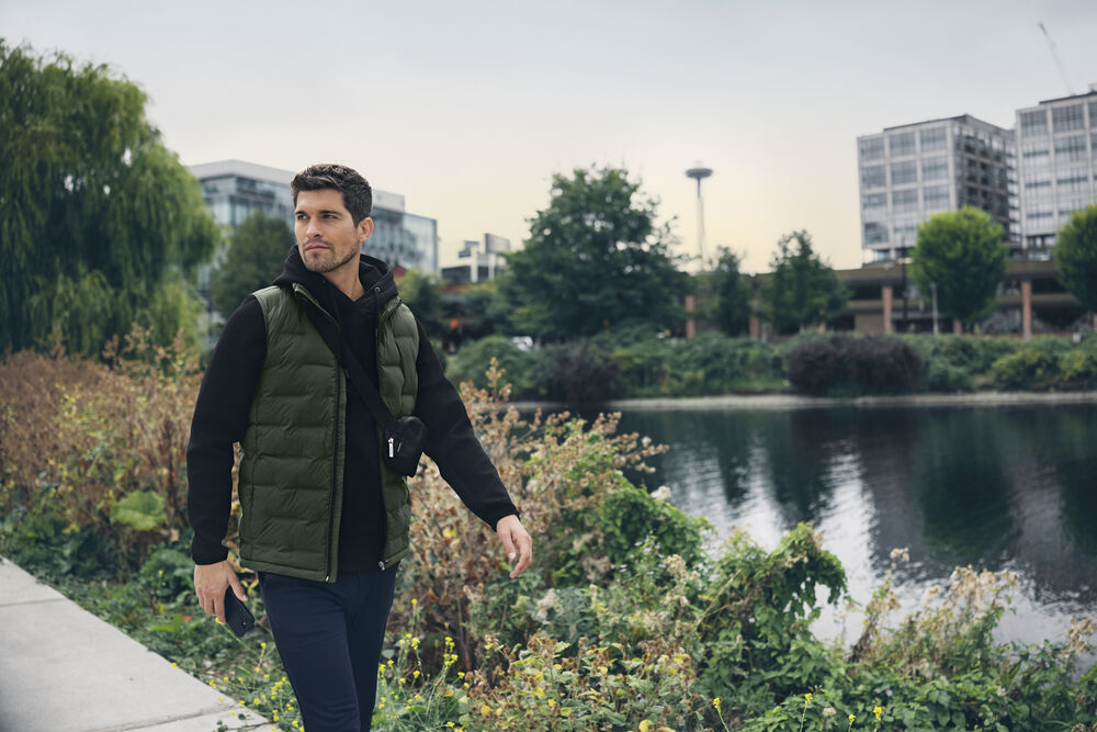Den innovativa Sustans®-vadderingen från Dupont™ och Sorona® gör västen lätt, luftig och värmeisolerande samtidigt som den håller en slim och stilren passform. Tack vare sin låga vikt fungerar den lika bra som ytterplagg under milda dagar som mellanlager under en jacka vid kyligare temperaturer.